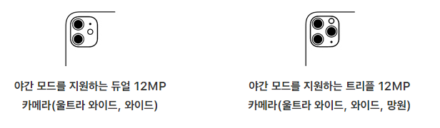 하지만 초광각은 아이폰11pro와 동일하게 탑재되어있으며, 야간모드까지 기능은 동일합니다.