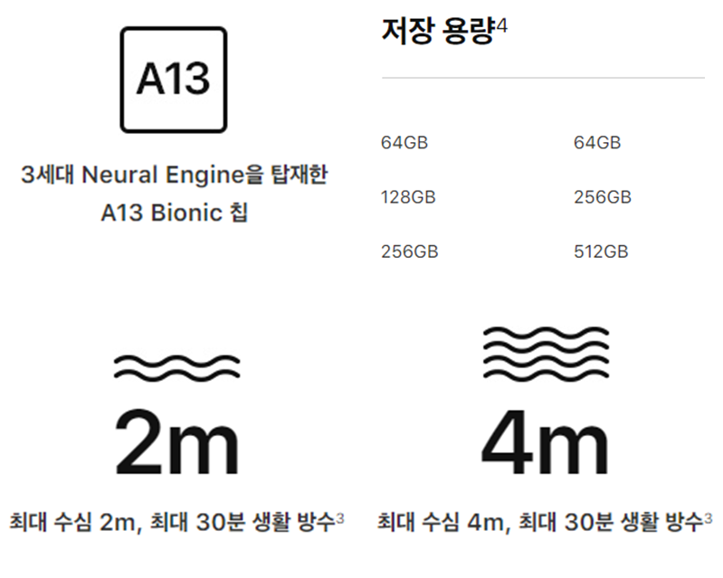 아이폰11pro는 4m 30분을 견딜 수 있는 차이가 있습니다.